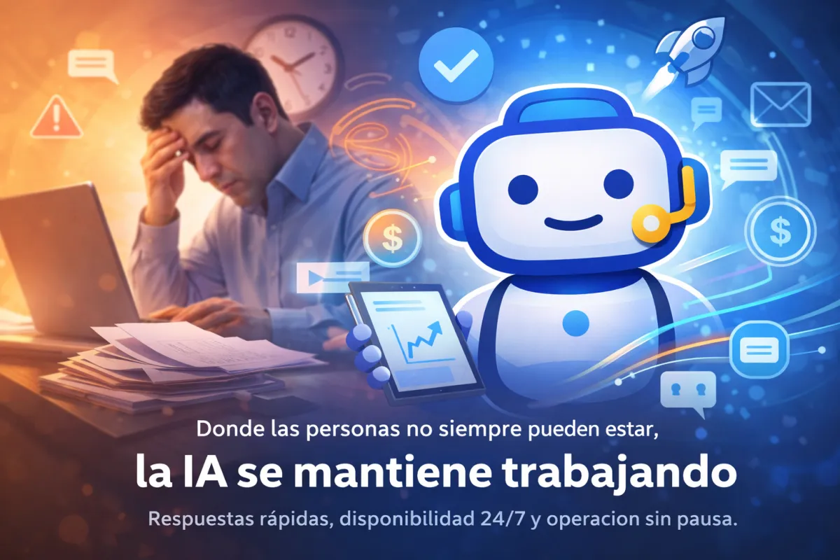La IA ejecuta acciones basadas en reglas, entrenamientos y flujos previamente definidos. El control estratégico siempre lo mantiene el negocio.